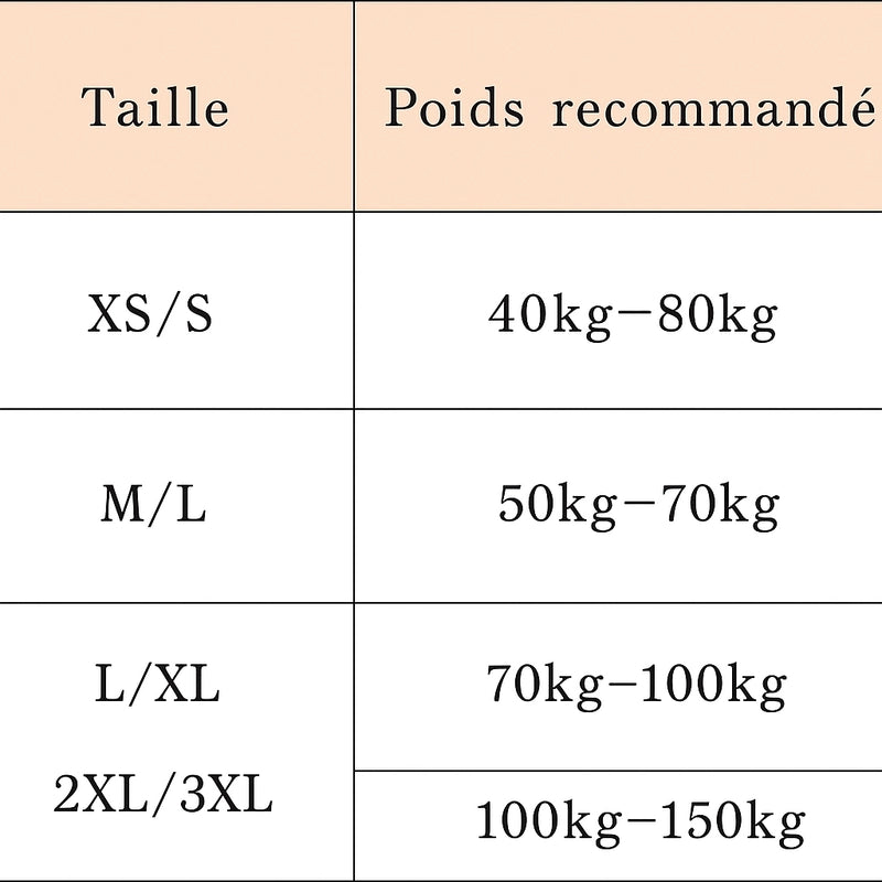 Nous avons créé un guide des tailles détaillé pour t'assurer un ajustement idéal. Choisis ta taille habituelle pour ressentir tout le soutien et le confort qui t'aideront à prendre ta place avec assurance.